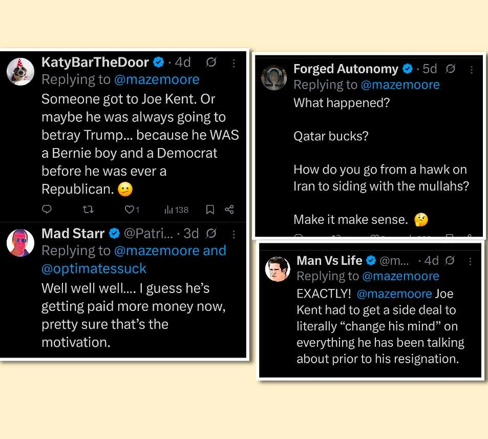 2. Joe Kent targeted. https://www.axios.com/2026/03/19/joe-kent-fbi-leak-investigation