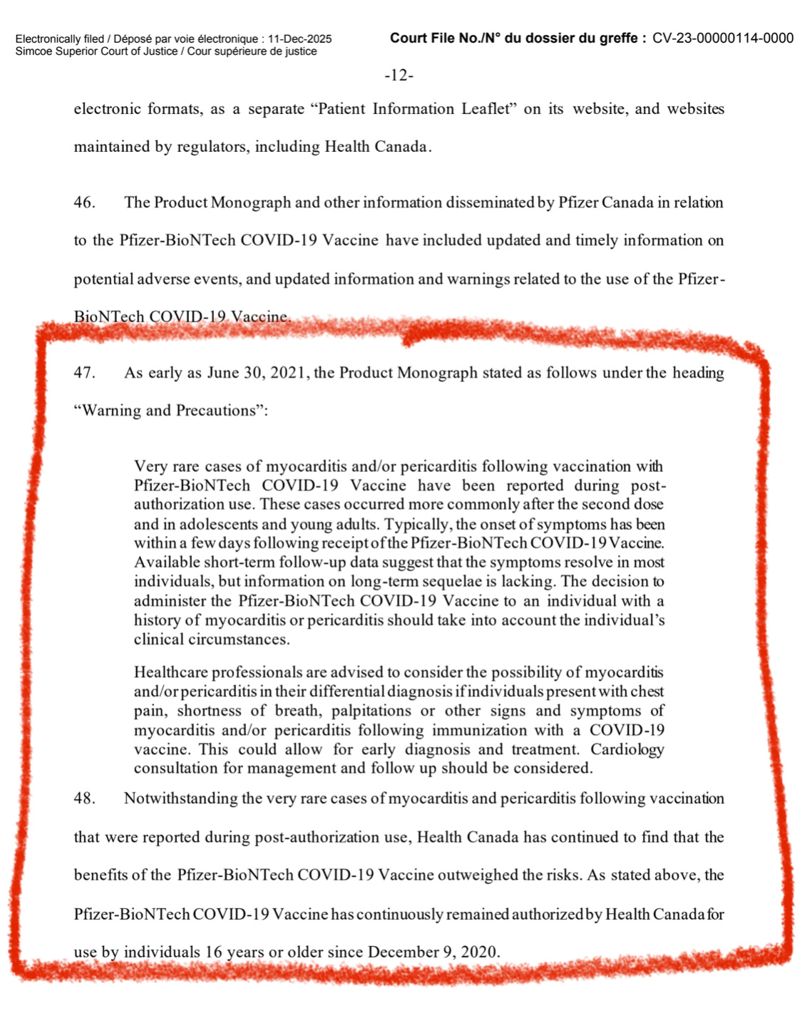 So far, the item of interest I picked up on is that they had signals of myocarditis that were not picked up in trials, that they admit having observed based on a post rollout data, yet they did not act on that data. Because they still weighed the benefits as exceeding the risks.