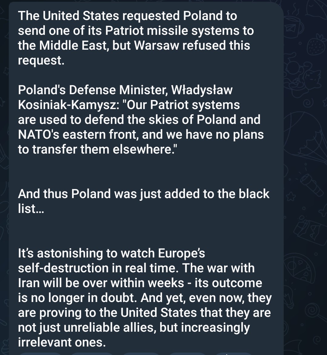 Maybe it's an unintended consequence or maybe by design. Either way, if this gets us out of NATO and tge EU, and we stop funding these countries to the tune of Billions, I'd not only be fine with that. Our Congress would NEVER cease funding all this. Maybe Trump just took care of that problem.
