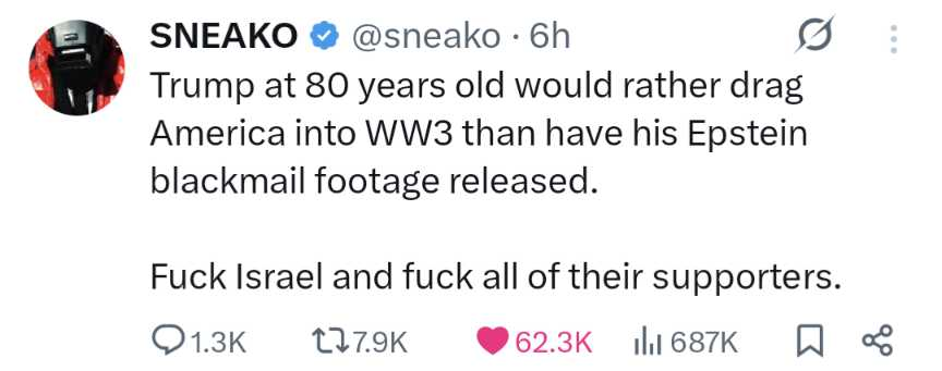 3. Israel 1st wants to end Free Speech. https://www.realclearpolitics.com/articles/2026/02/13/is_free_speech_really_the_highest_value_153834.html
