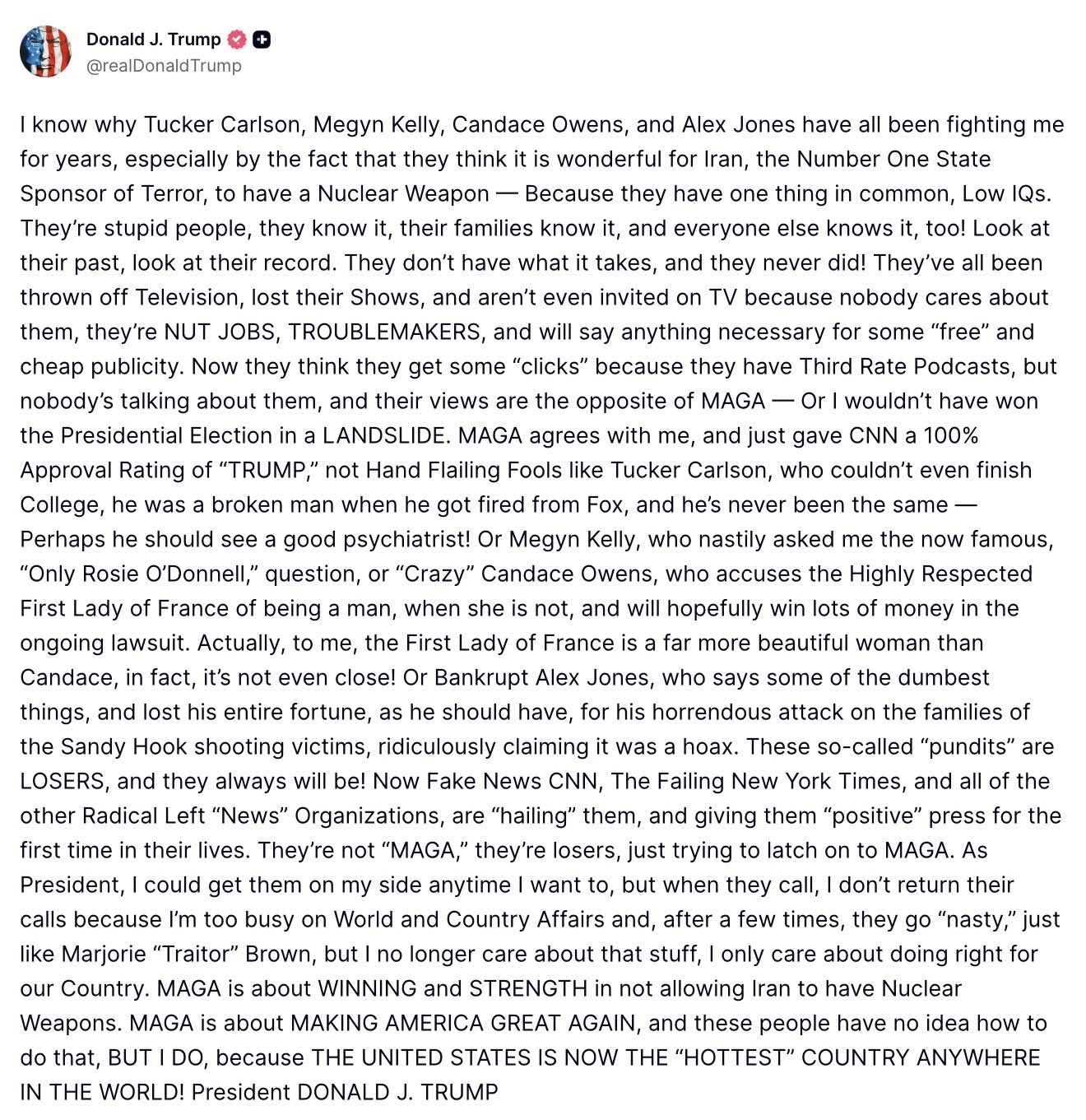 @RobertBarnes @VivaFrei and all. 🇺🇸Well, here it is, the Truth post by President Trump where he dumps his major supporters.