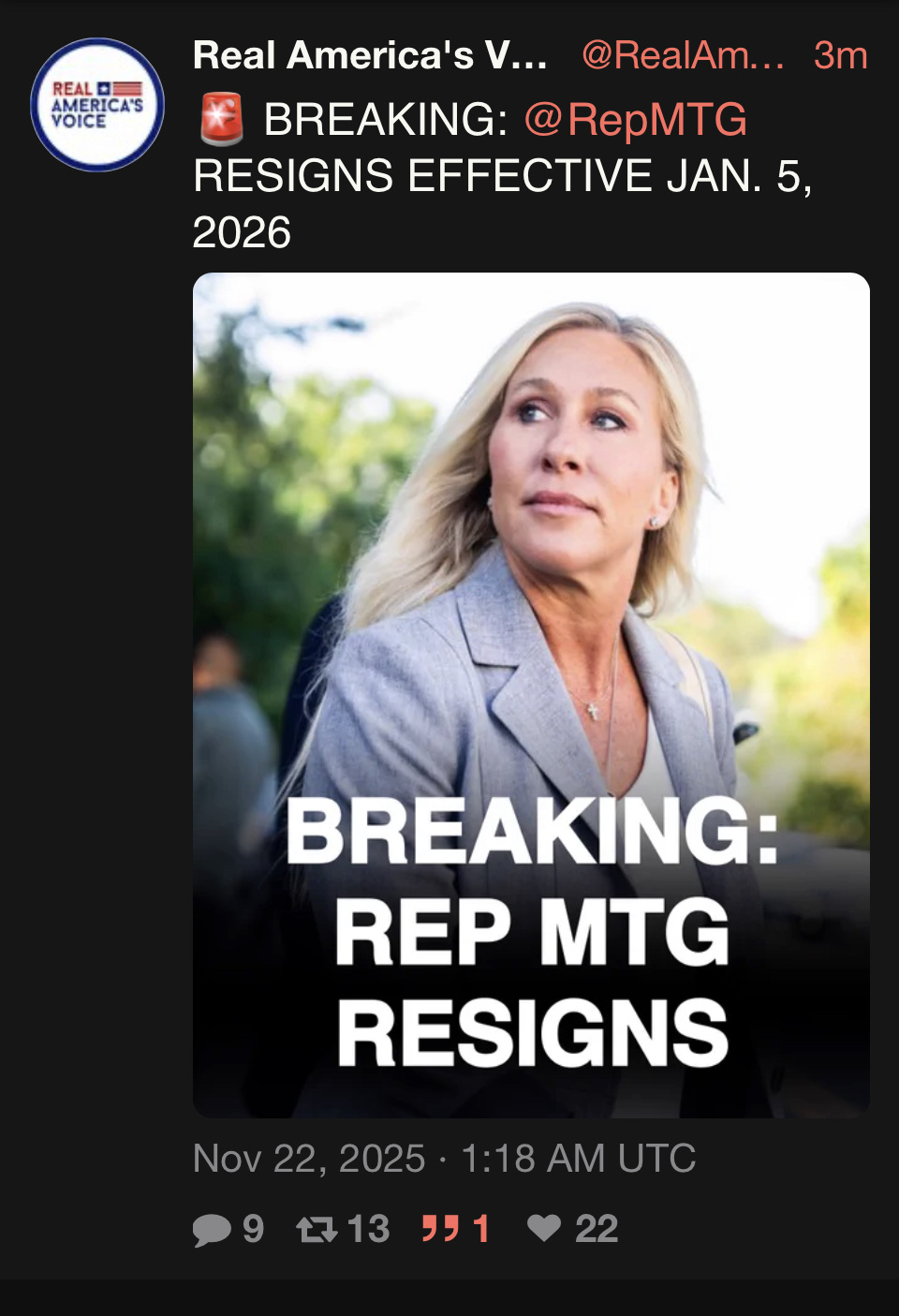 ➡️”BREAKING: MTG RESIGNS FROM CONGRESS.