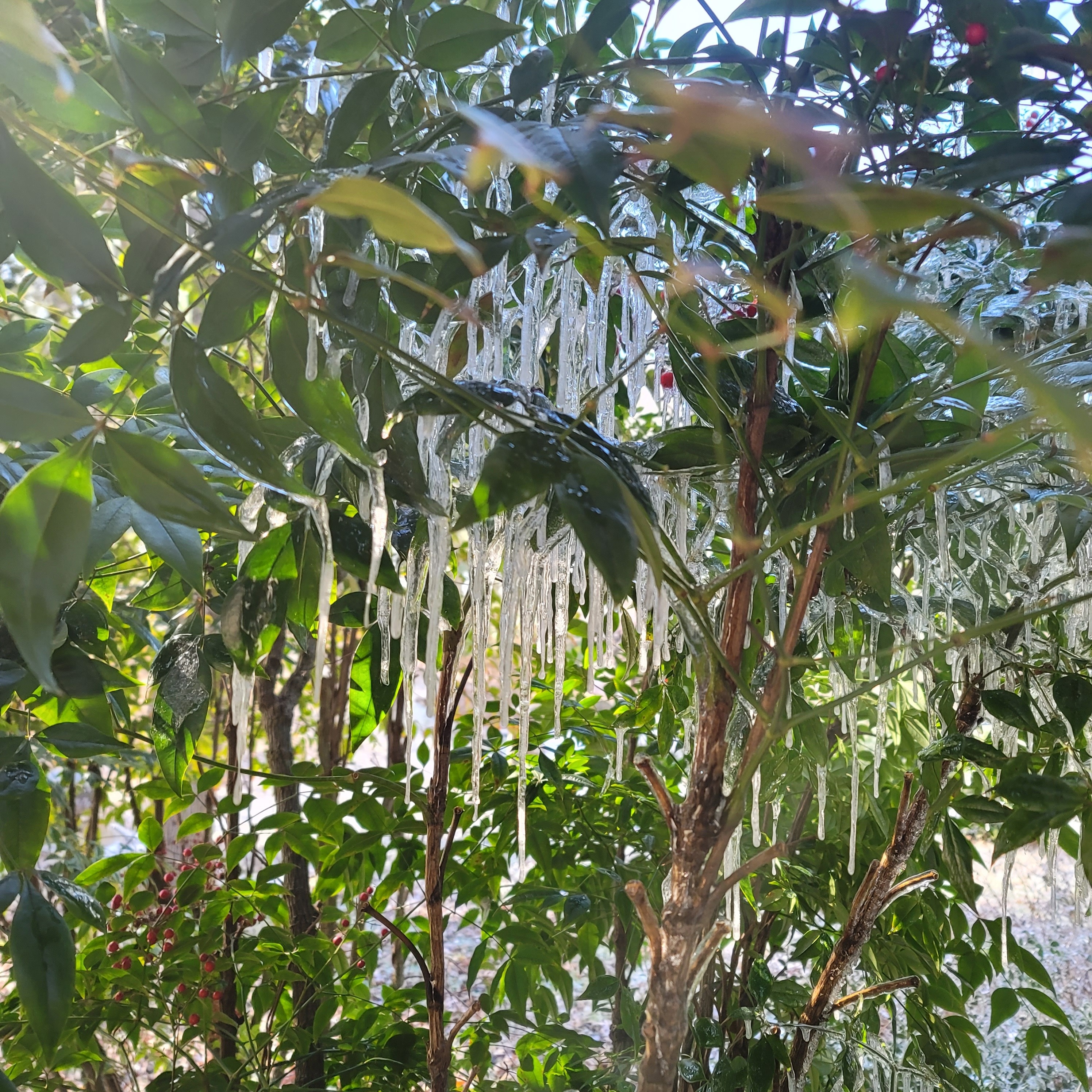 Looks like we are stuck for a while. There is no getting down our lengthy and ice covered driveway any time soon. We have electric and we have plebty of food.