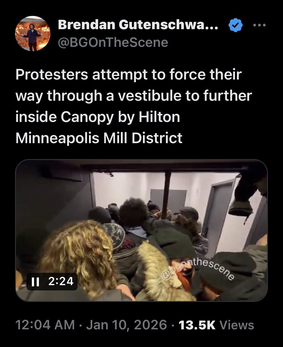 1. ICE shooting. https://x.com/AlphaNews/status/2009679932289626385?s=20