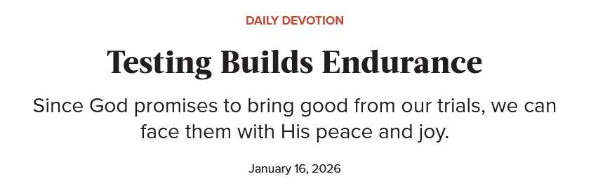 When our faith is tested, the end result is endurance; being aware of this gives us hope and strength. What’s more, the Bible promises God will use trials for our good (Romans 5:3-5), so there’s no need to be afraid or anxious."