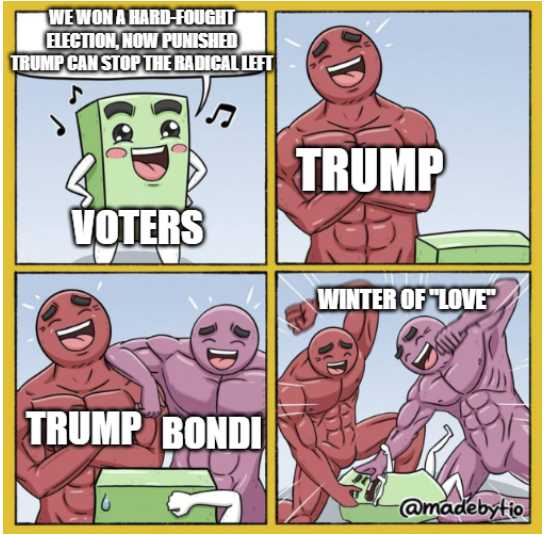 ***Bonus: Bondi burying cases of corporate corruption. https://www.citizen.org/article/canceled-corporate-enforcement-trump-first-year-second-term/