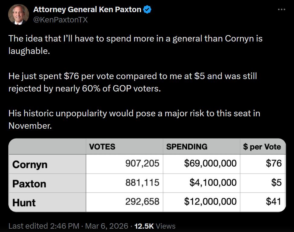 2. Corny Cornyn. https://thefederalist.com/2026/03/05/10-times-john-cornyn-betrayed-trump-and-maga/