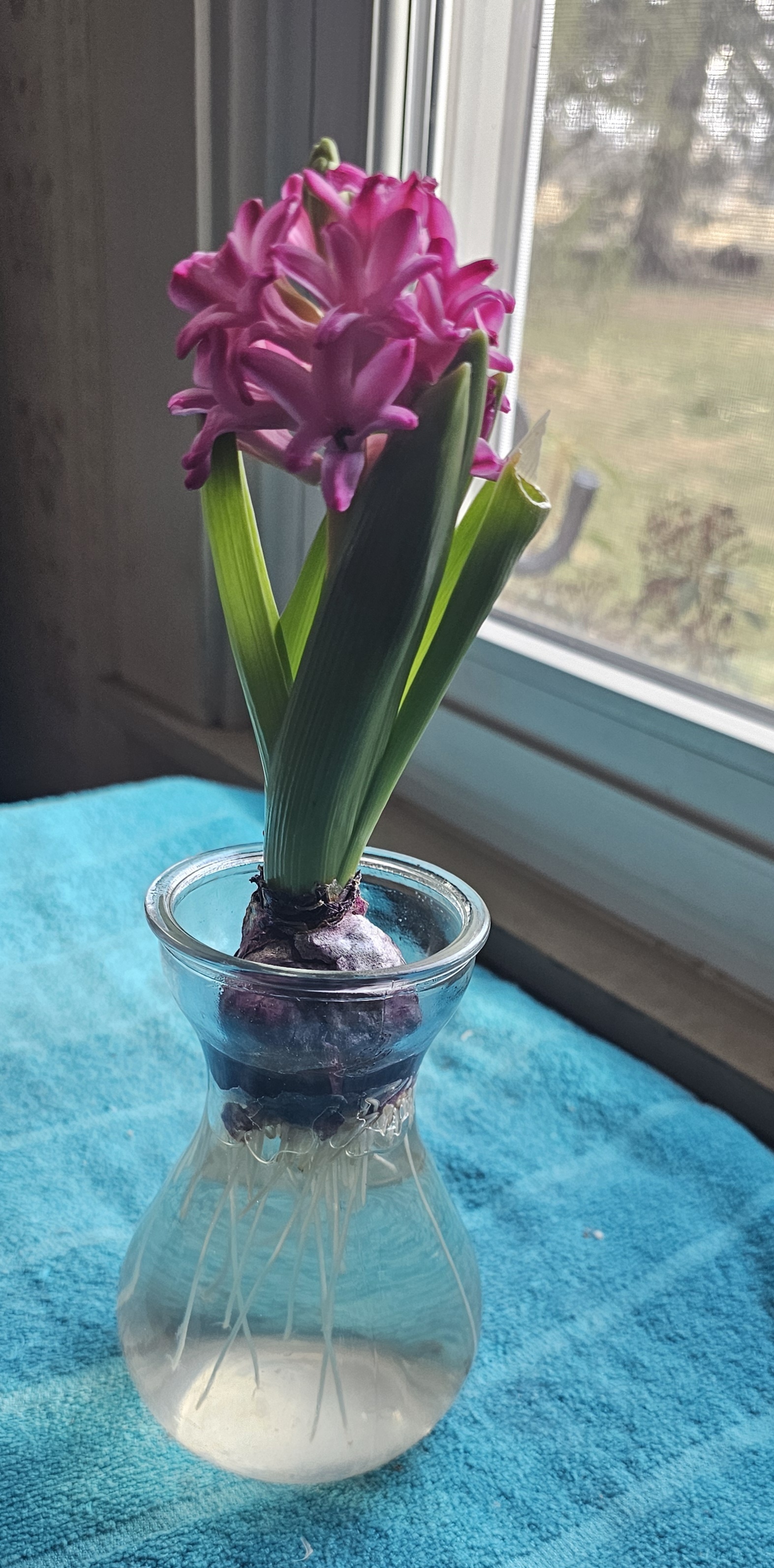 A friend gave me this hyacinth bulb for Christmas. And so today i can see spring is coming ! God is good, all the time. The flower lifted my otherwise depressed state of mind this am. .