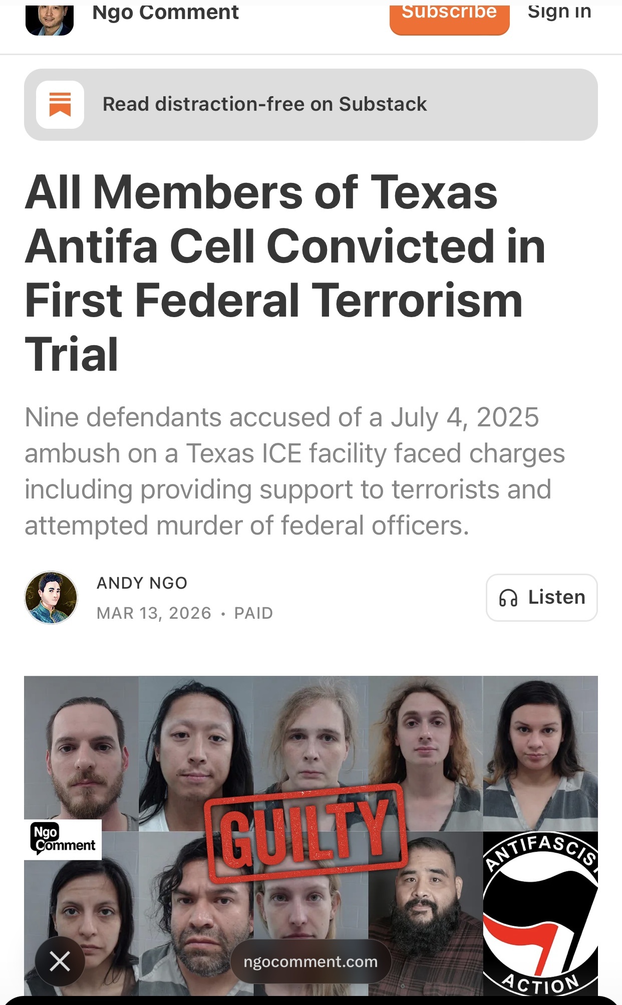 “FORT WORTH, Texas — A federal jury in Fort Worth, Texas has convicted all nine members of a North Texas Antifa cell in the first federal Antifa terrorism trial in U.S. history.