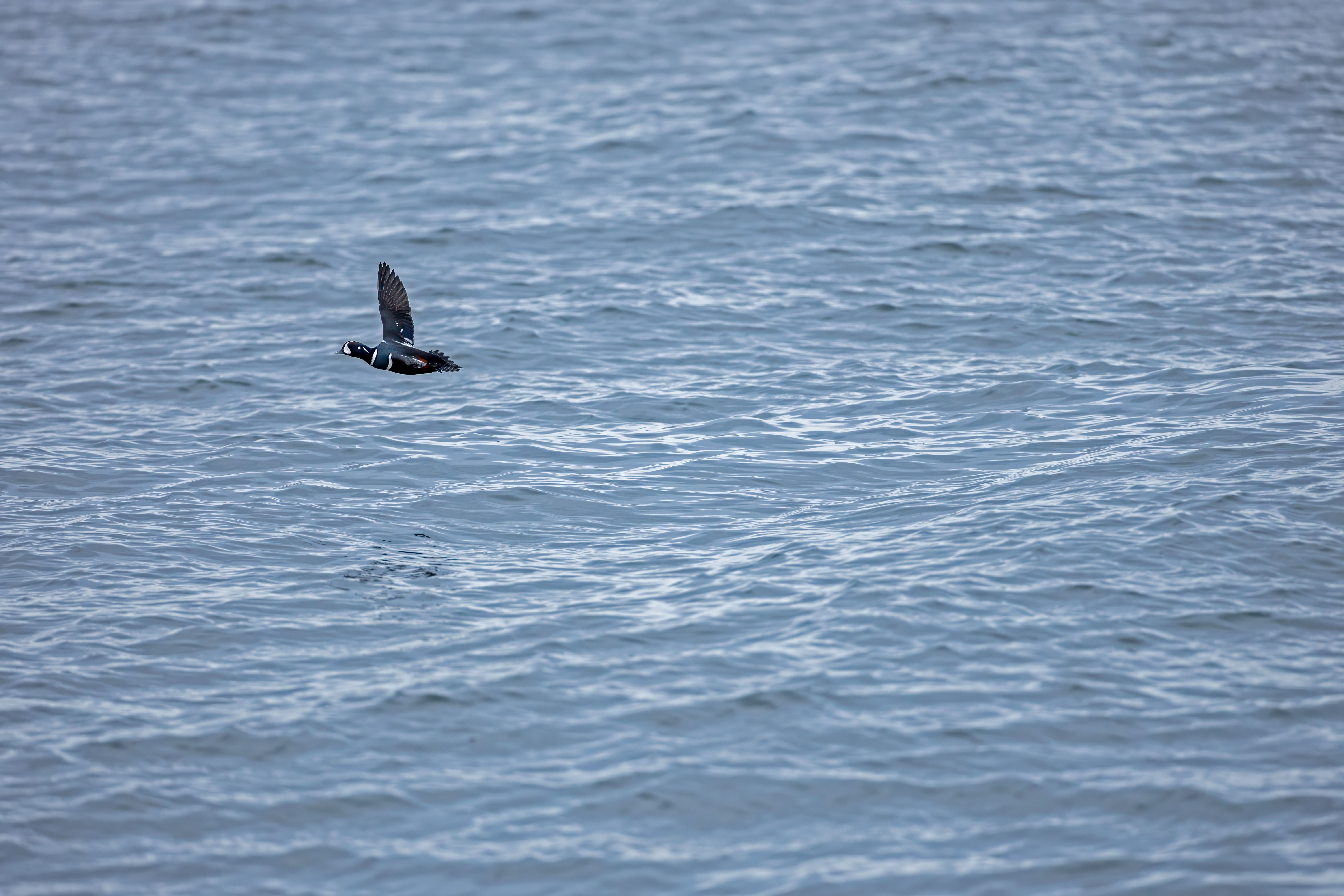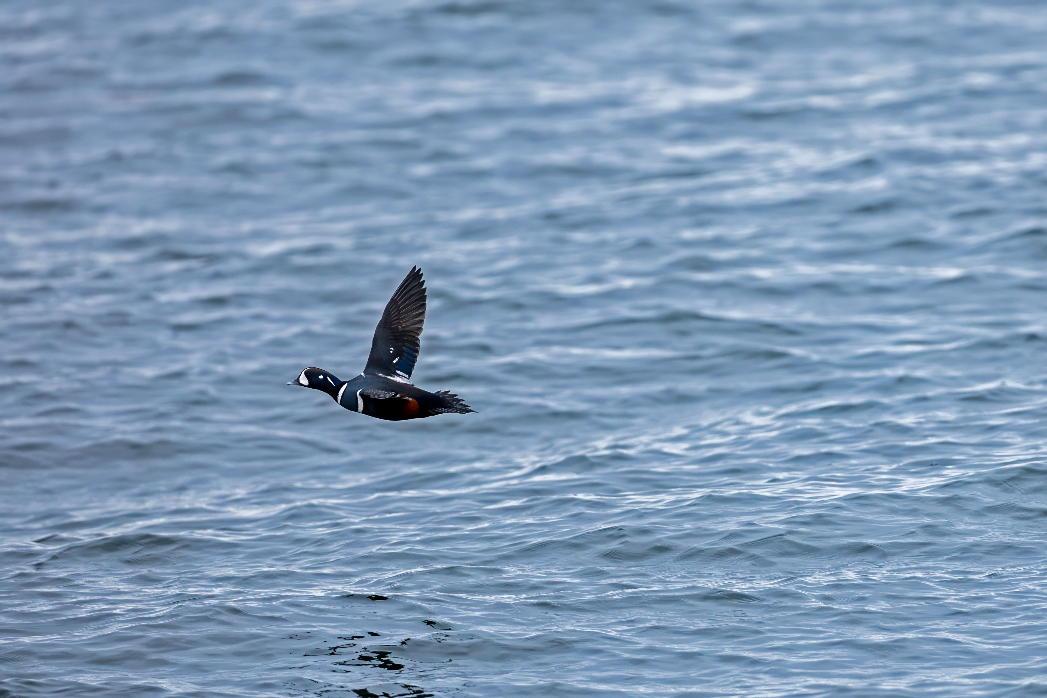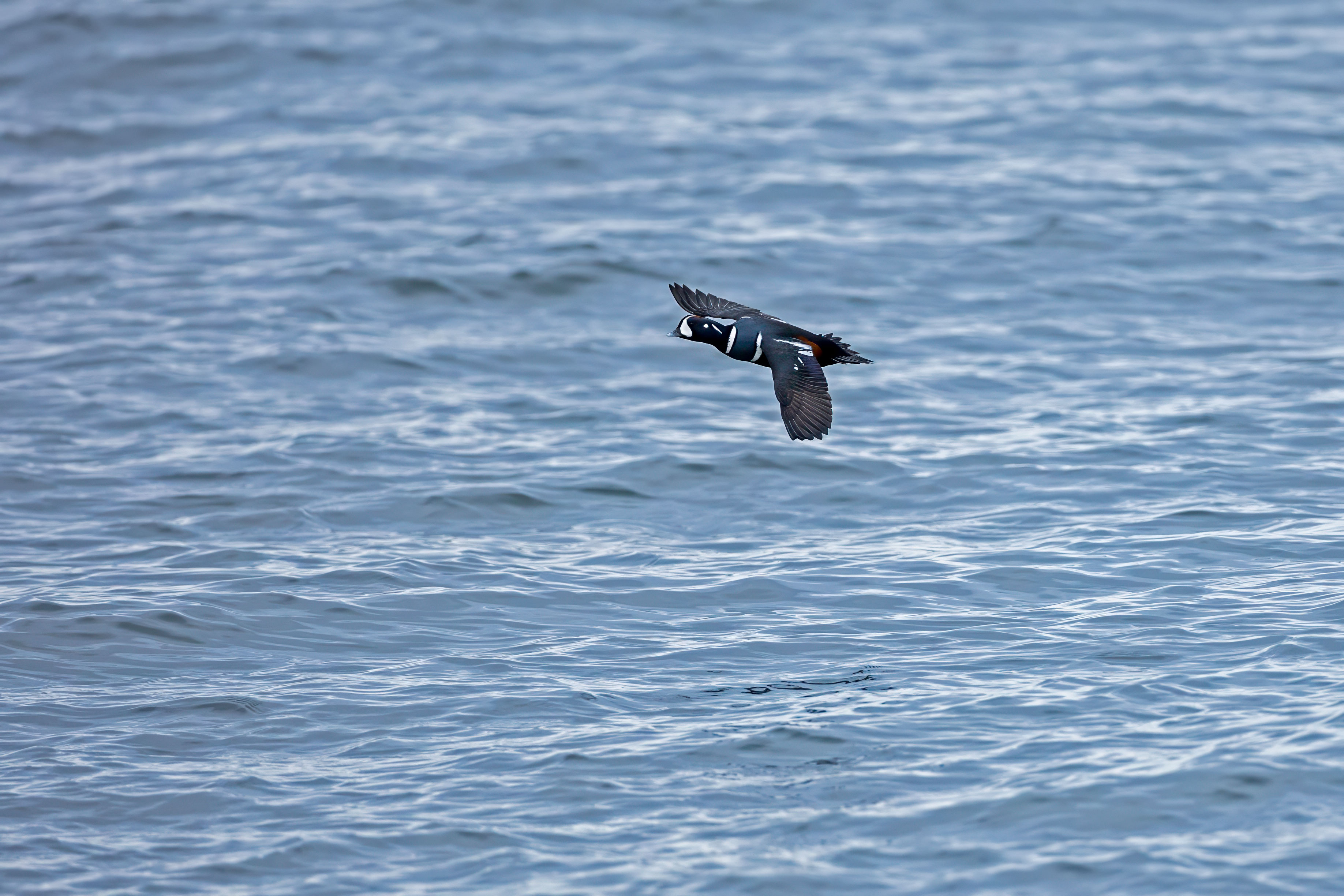 More images from our trip to Halibut Point State Park to see the Harlequin ducks. This time it's a Harlequin in flight along with a passing Eider. Both ducks are beautiful. But I find the Harlequin more striking.