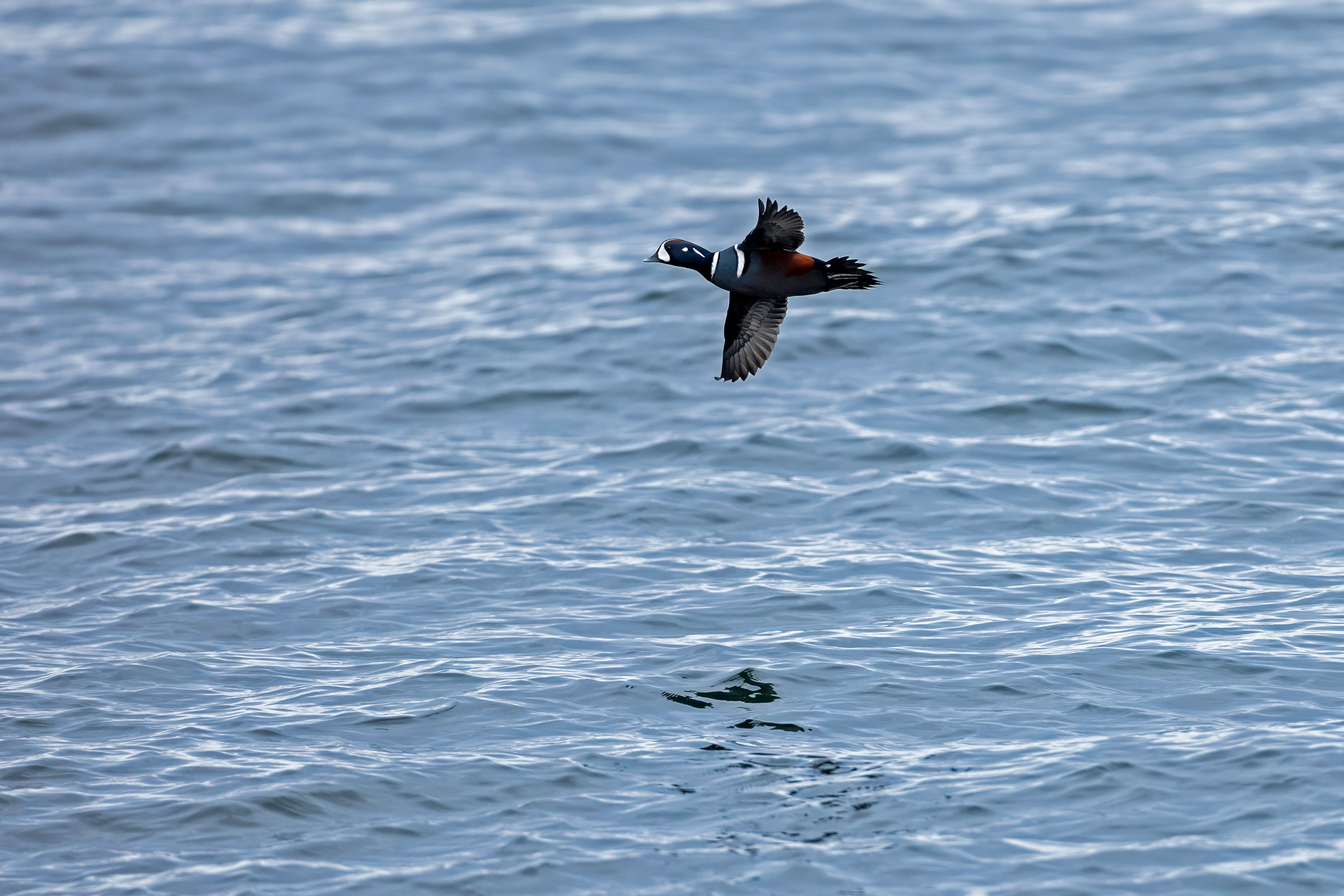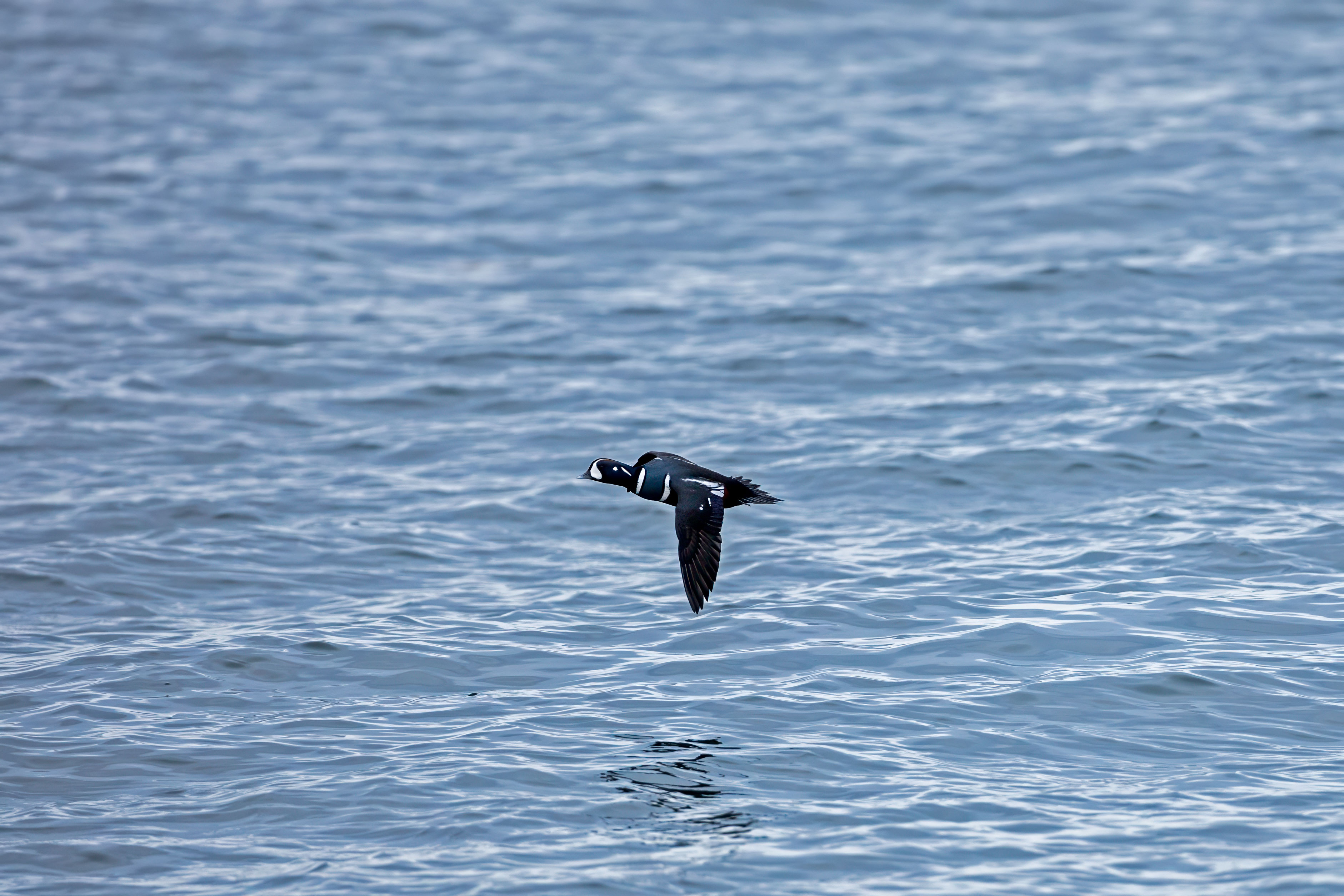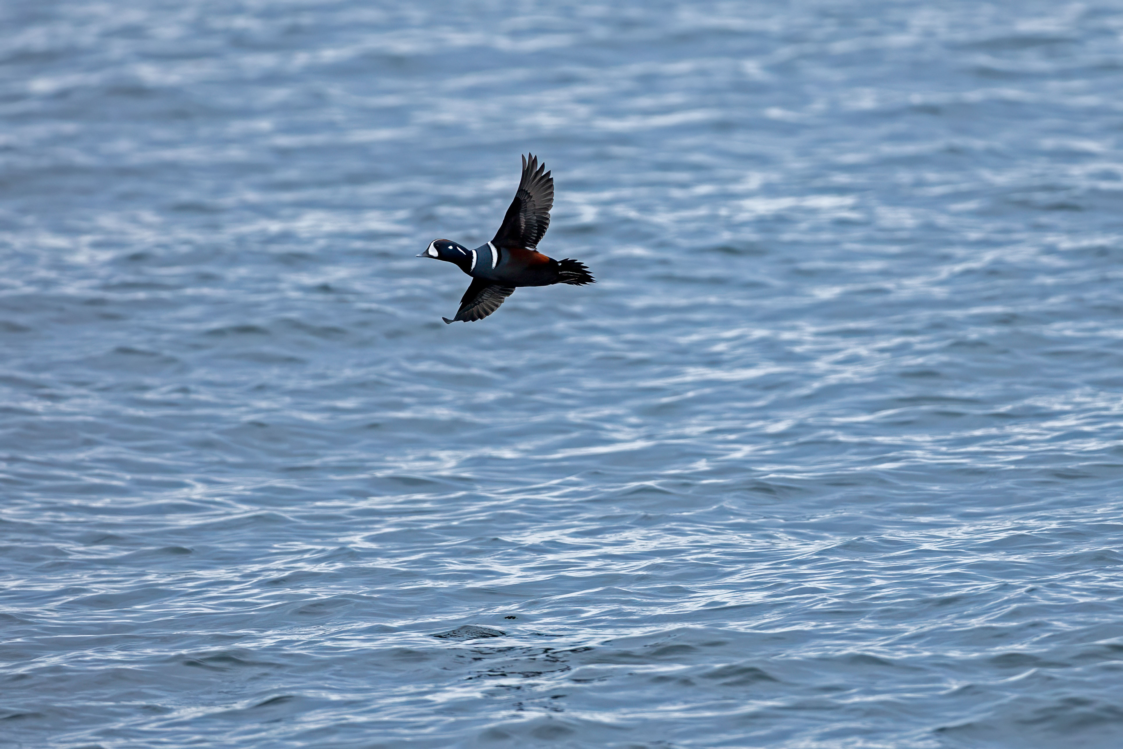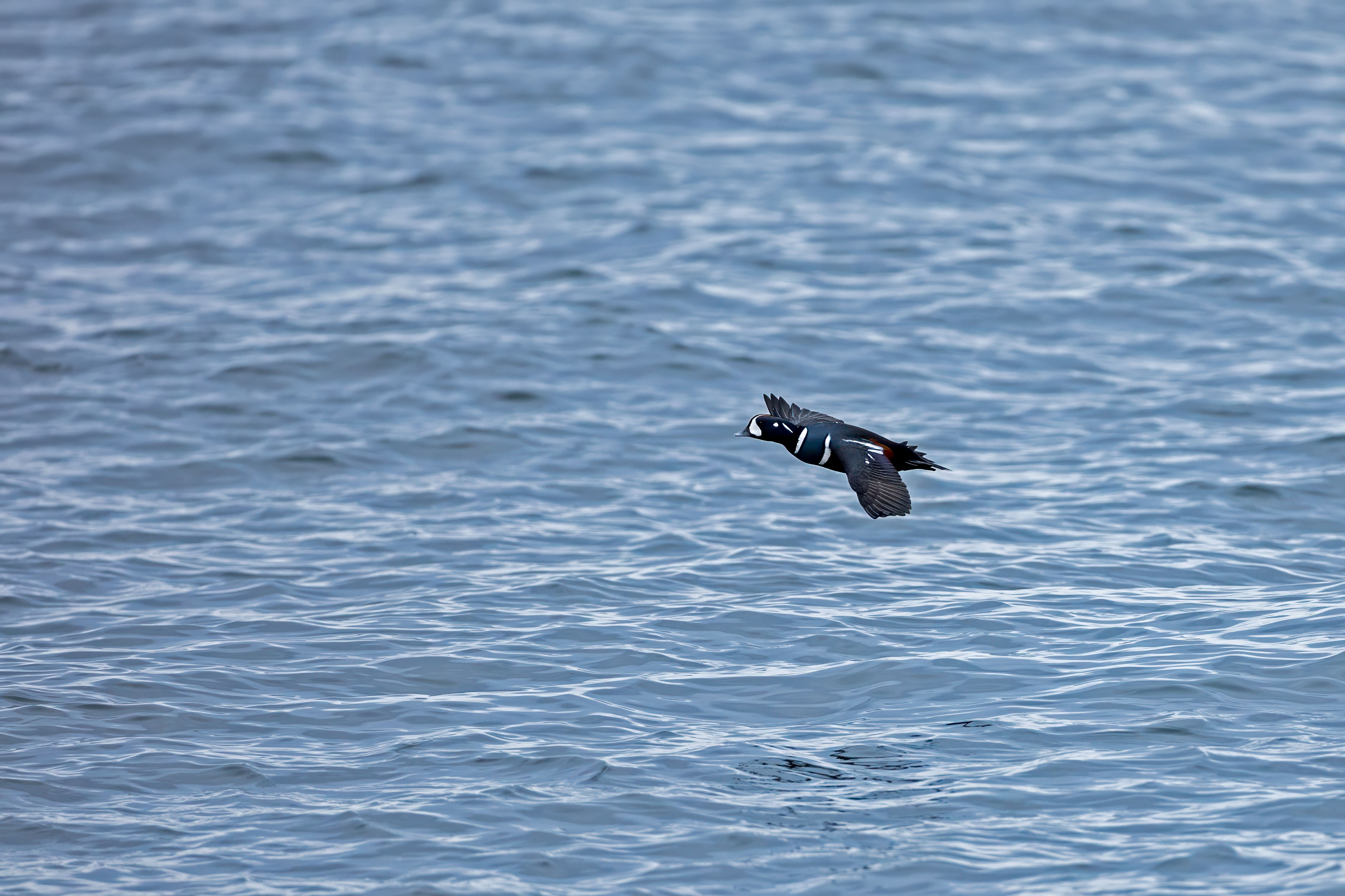 More images from our trip to Halibut Point State Park to see the Harlequin ducks. This time it's a Harlequin in flight along with a passing Eider. Both ducks are beautiful. But I find the Harlequin more striking.