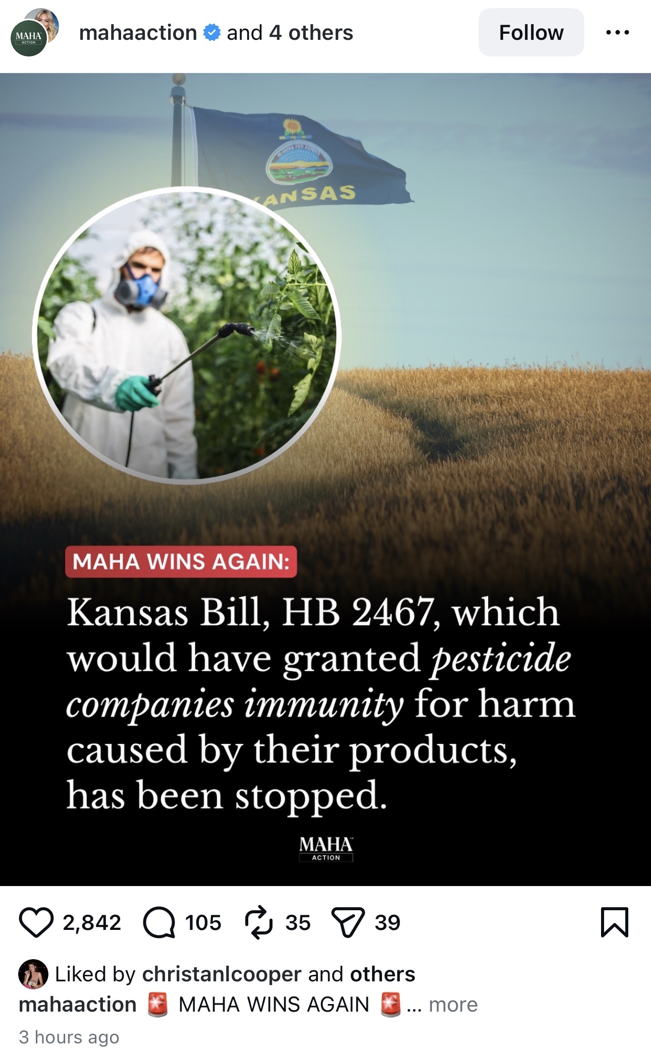 MAHA continues to make strides at the state level. https://www.instagram.com/p/DWhg9ZiicEb/?igsh=MWcwNTh5anZ0emN4cw==