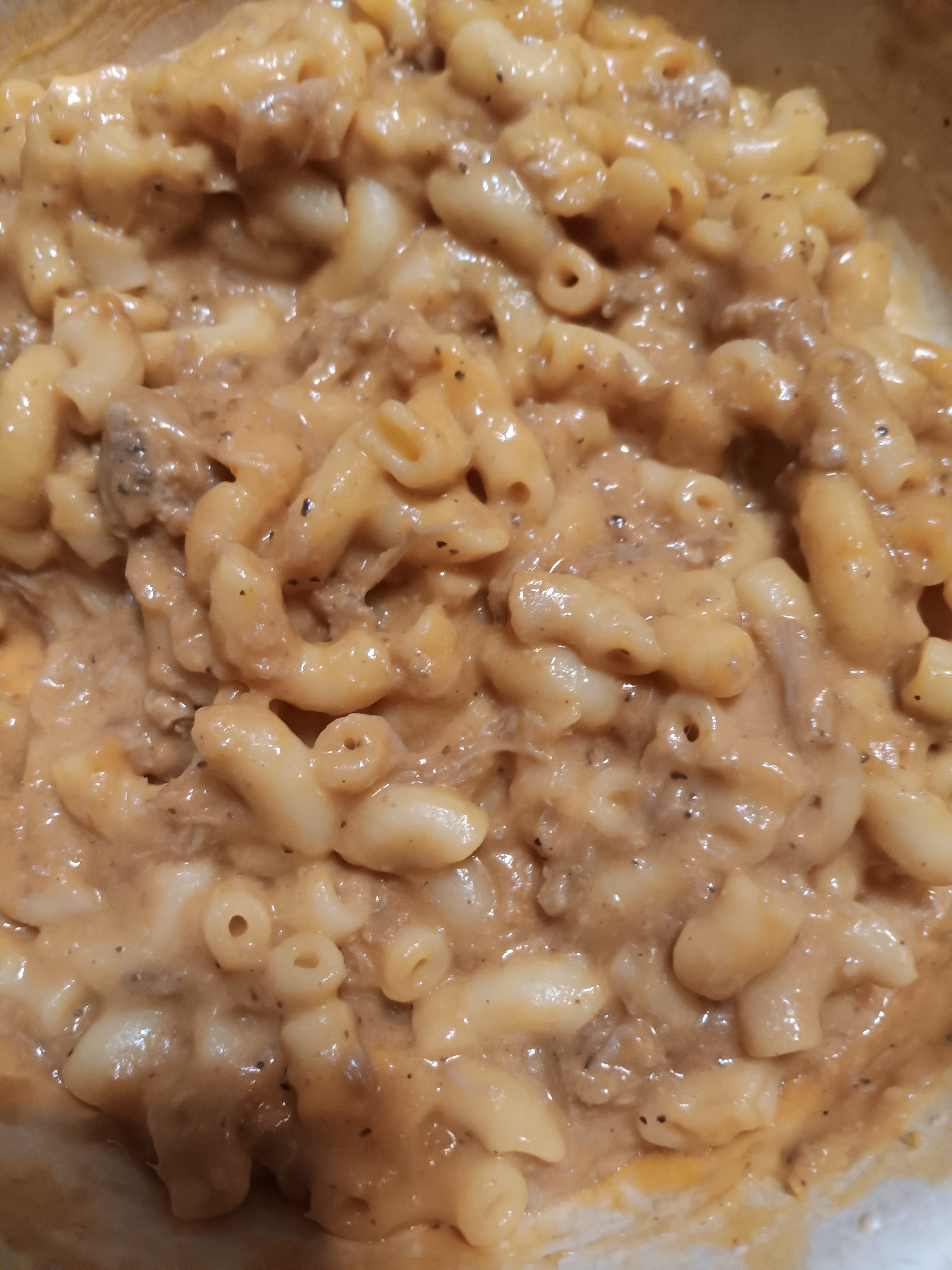 My mom made some mac n cheese, with pulled pork n BBQ sauce.... and its DAMN good good!!! Ill be going back for 3rds. 😂🤣😂