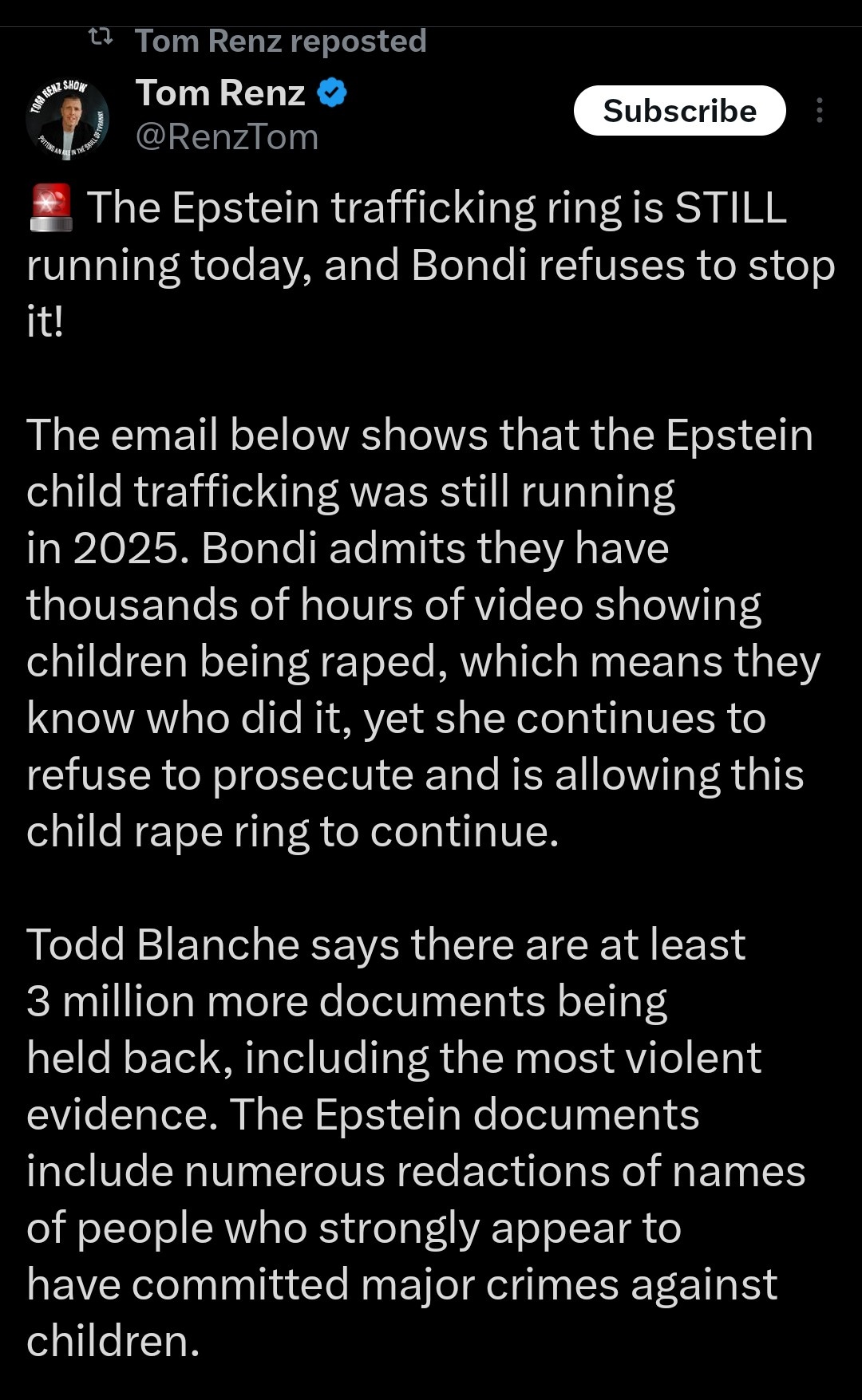 Furthermore a REFUSAL to investigate or prosecute ANYONE within those files. Additionally, the worst of the files they have WITHHELD. That makes this even worse.