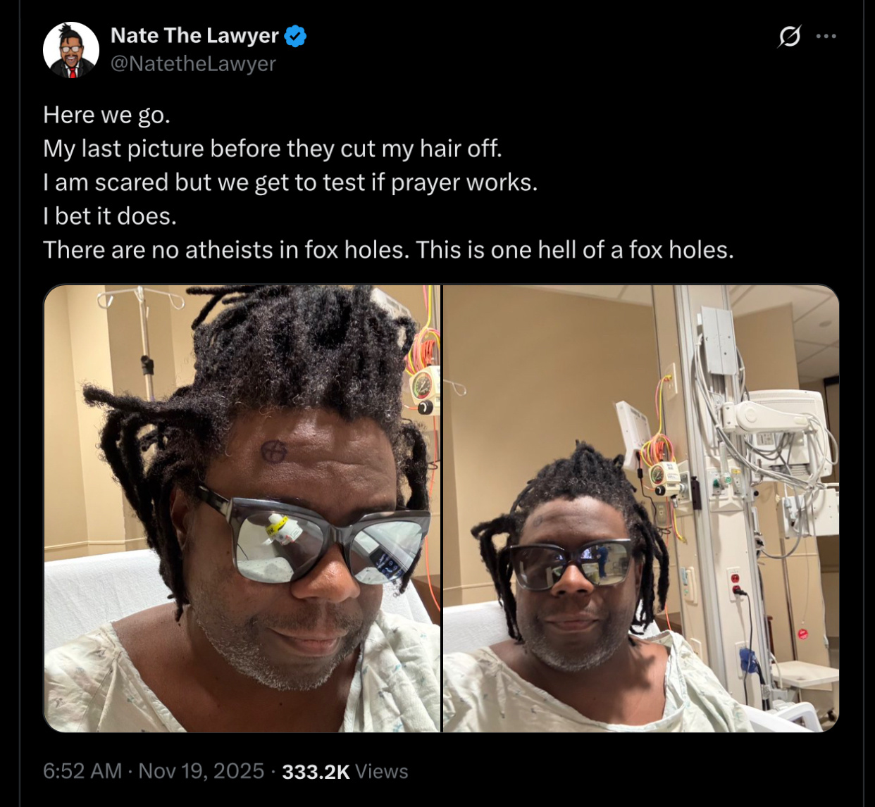 While not always agreeing with his legal takes, he seems to be a genuinely nice family guy and is Eric Hunley’s best friend. Please pray for him today as he goes through brain surgery.